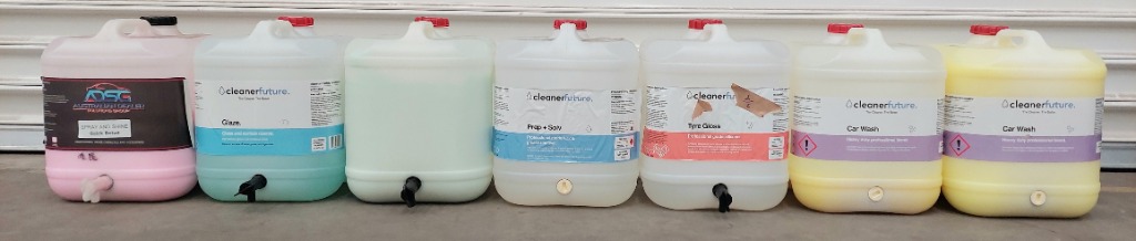 Assorted Automotive Cleaning Chemicals: Spray & Shine, Glass & Surface Cleaner, Professional Grade Wax & Grease Remover, Professional Grade Silicone Tyre Glosss, Car Wash Heavy Duty Pro Blend x 2.
