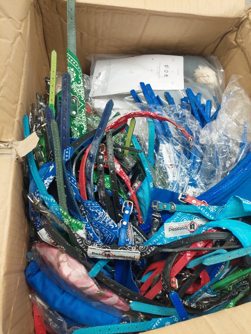 Pet obsessed, assorted items, include bone shaped chewing dog toy, cat playing ball collars and more...Sold as a lot