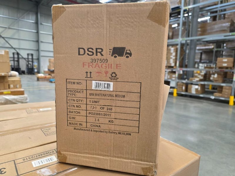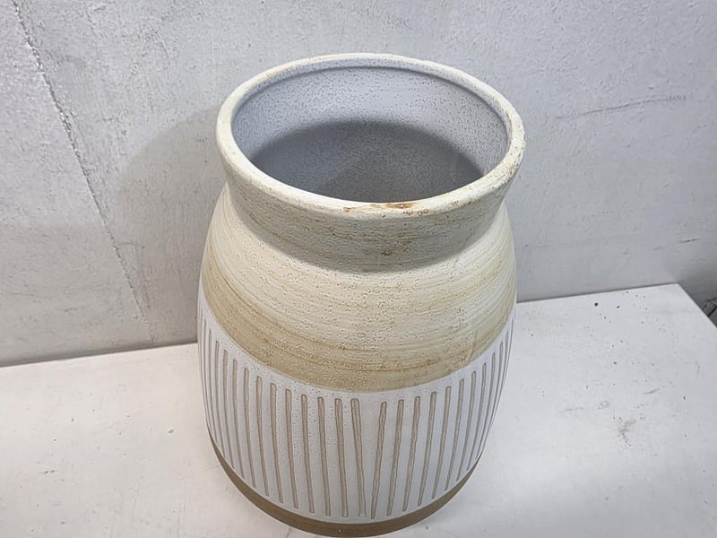 RRP $149, Kibera Urn White/Natural Medium Approx Dimensions: 22cm X W, 22cm X D, 33cm X H