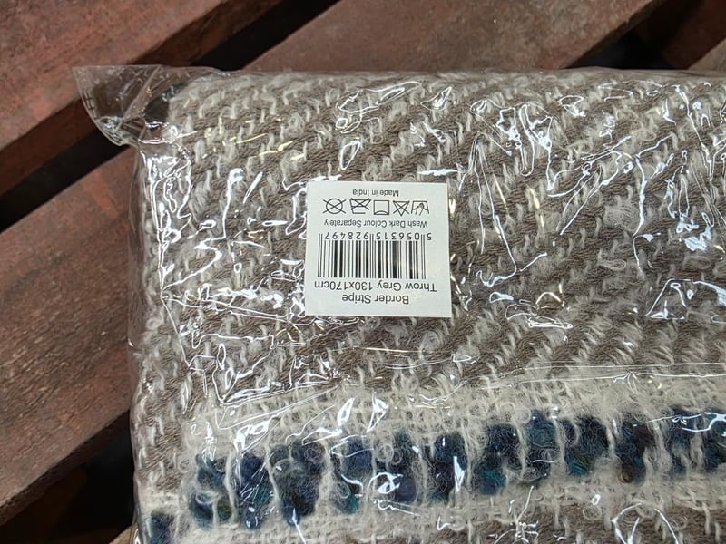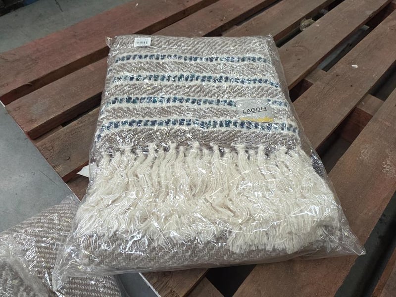 RRP $135.00, Border Stirpe Throw Grey Approx Dimensions: 130cm X W, 170cm X D