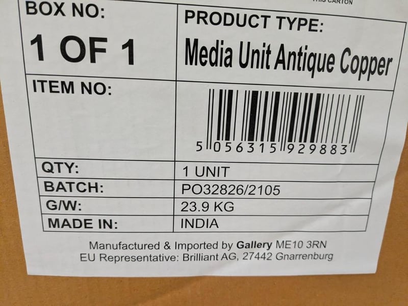 RRP $1465, Hadston Media Unit, Antique style, Copper, 1200x350x450mm