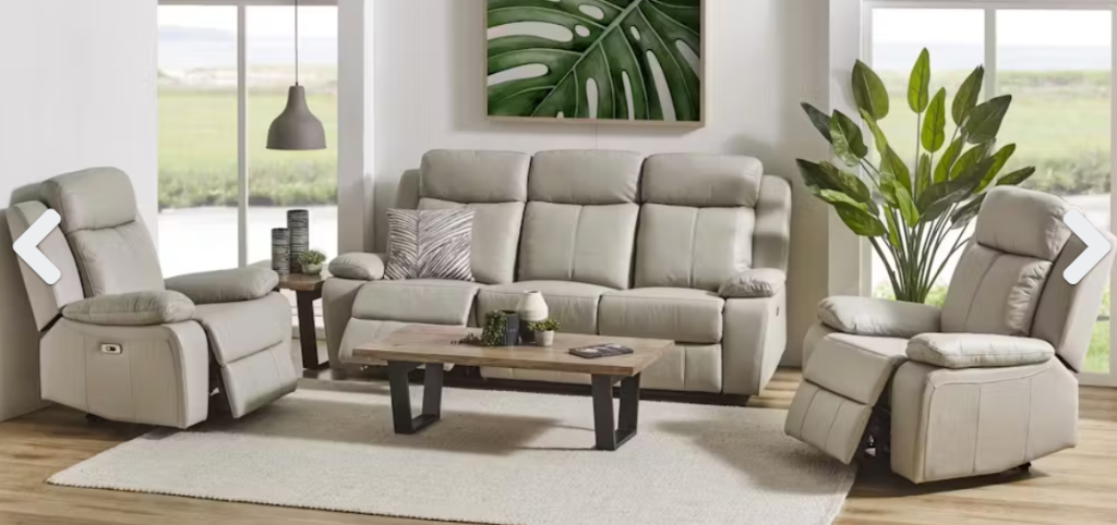 Rozelle 3-Piece Leather Powered Recliner Lounge Suite - Silver Grey, Model: VROZ311KITGColour Silver GreyFrame Material PlywoodUpholstery LeatherSupport System Pocket Spring, Sinuous SpringsCushion Filling Material FoamProduct Height (cm) 3-Seater: 104 | Recliner: 104Product Width (cm) 3-Seater: 218 | Recliner: 104Product Depth (cm) 3-Seater: 94 | Recliner: 94Weight (kg) 203