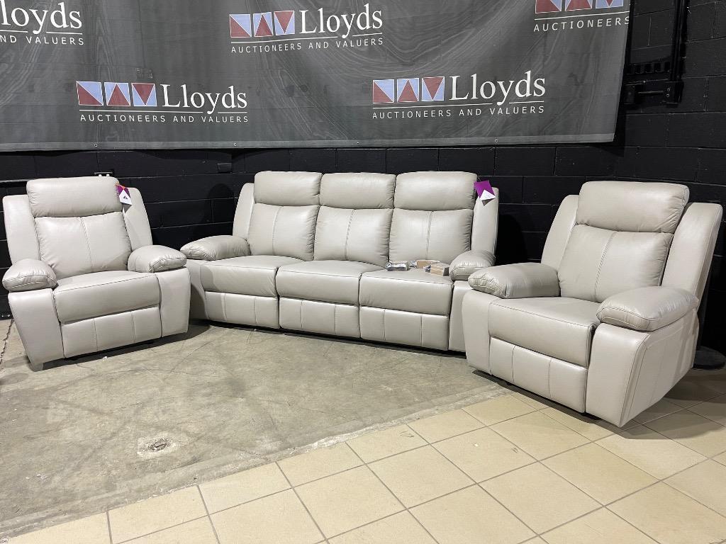 Rozelle 3-Piece Leather Powered Recliner Lounge Suite - Silver Grey, Model: VROZ311KITG