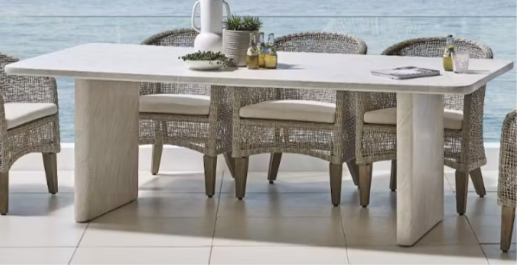 RRP: $2199, Skyler Outdoor Rectangular Dining Table, Model: 79827 Note: Table only, Chairs are not included. Frame Material Concrete Table Shape Rectangular Product Width (cm) 225 Product Depth (cm) 100 Product Height (cm) 75