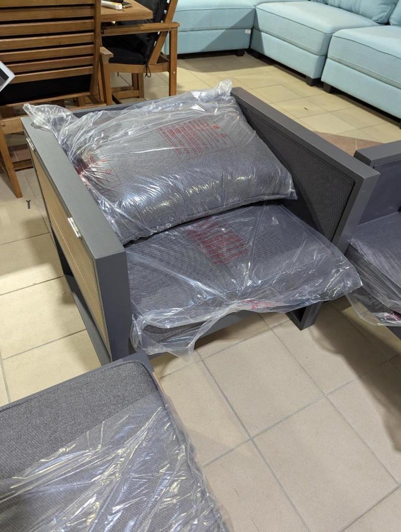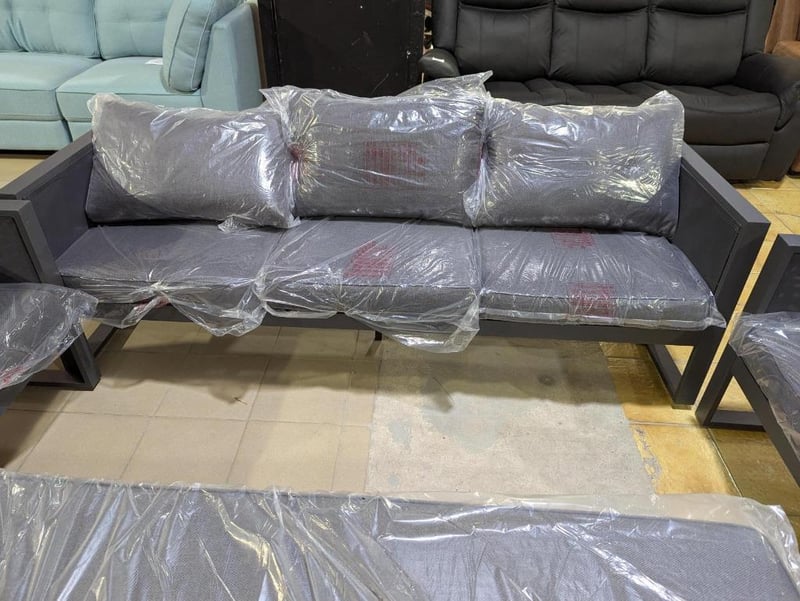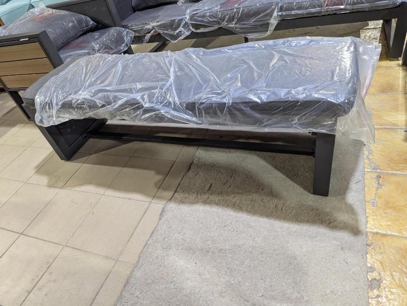 Bella Outdoor Lounge Setting - Graphite Note: Dining Table Is Not Supplied Frame Material Powder-Coated Aluminium Table Top Material Polywood Upholstery Olefin Cushion Filling Material Dacron, Foam Back Cushion Filling Material Fibre, Foam Product Height (cm) 3-Seater: 66 | Armchair: 66 | Bench: 42 Product Width (cm) 3-Seater: 207 | Armchair: 77 | Bench: 155 Product Depth (cm) 3-Seater: 67 | Armchair: 67 | Bench: 44.5