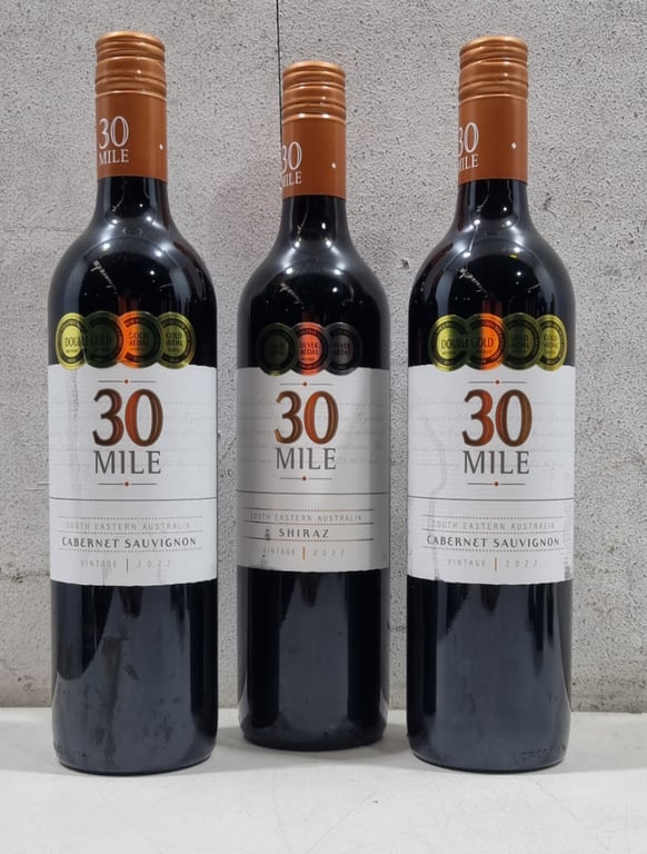 30 MILE SOUTH EASTERN AUSTRALIA CABERNET SAUVIGNON VINTAGE 2022 3 X 750ML SOLD AS LOT