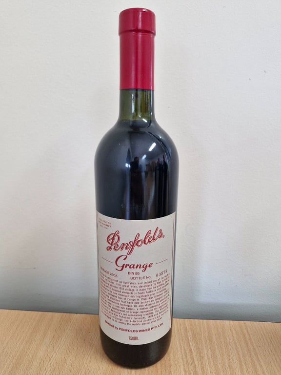 PENFOLDS GRANGE 2003, BIN 95, VINTAGE 2003, 750ml BOTTLE Tasting Notes: Robert Parker (92) Penfolds- iconic 2003 Grange is Shiraz blended with 3.5% Cabernet Sauvignon from Coonawarra. It was aged for 15 months in 100% new American oak. Opaque purple-colored, it offers up aromas of cedar, cigar box, leather, Asian spices, and blueberry. On the palate it is layered but a bit short on depth and grip with only moderate length. It will evolve for 5-7 years and drink well from 2014 to 2030. Winespectator (94) Supple, ripe and generous with its blueberry, plum and mocha flavors, riding easily over finely wrought tannins and extending into the long, expressive finish. Rich, complex and evocative, this has plenty of flavor packed into a beautifully balanced package. Rene Gabriel (19) Rene Gabriel rates this wine 19/20 points.