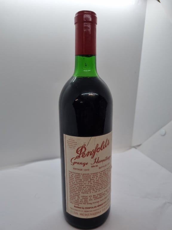 PENFOLDS GRANGE HERMITAGE BIN 95 , VINTAGE 1989, Bottled 1990, 750mL COLOUR Medium crimson. NOSE Fresh aromatic redcurrant, musky, tea leaf aromas with some liquorice. PALATE Lovely early drinking Grange with redcurrant confit, blackcurrant pastille flavours, plenty of fruit sweetness, underlying vanillin oak and chocolaty, dense, dry tannins.