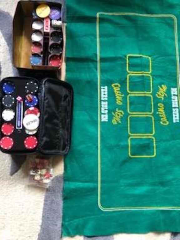 World Series Poker, with cards, dices and fold our gaming mat