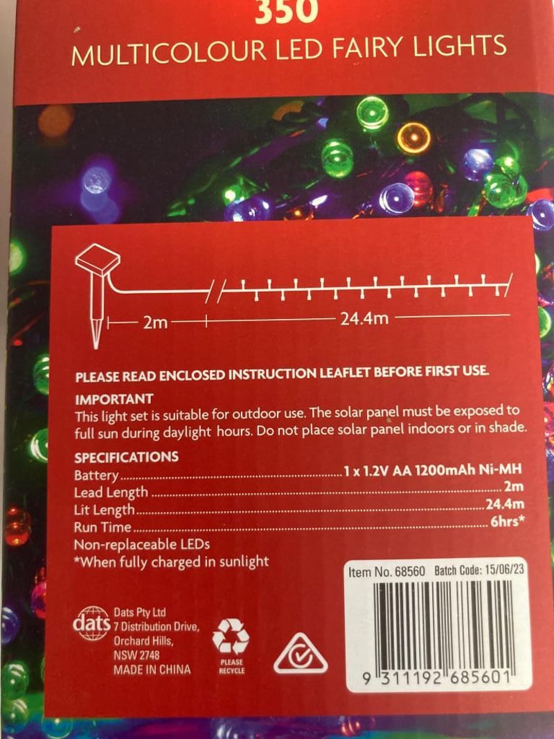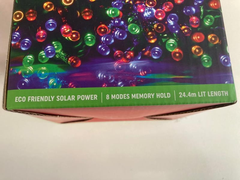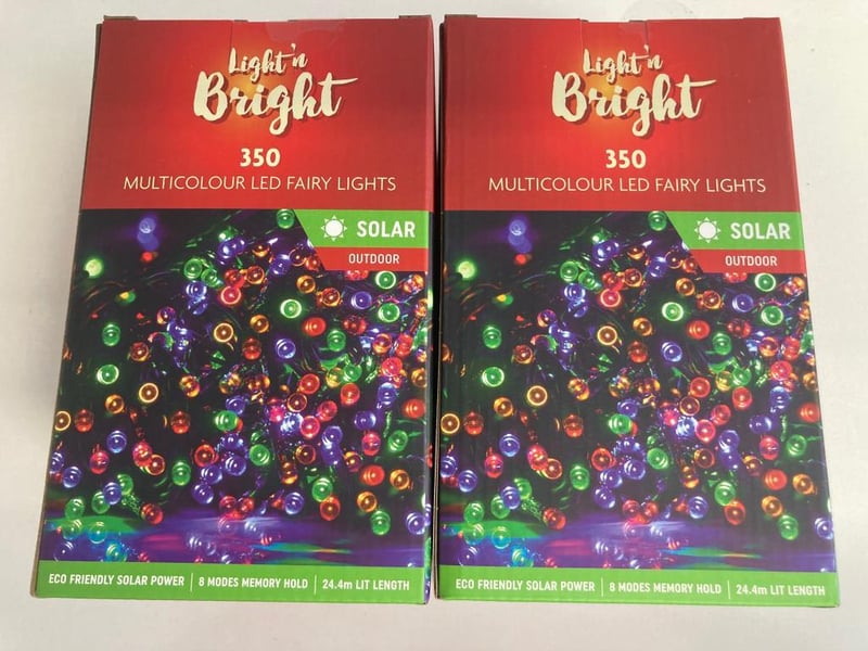2 X Sets 350 Solar Multi Colour Fairy Light LED, 8 flash modes, memory hold, auto on-off, 24.4m lit string length each, SOLD AS 1 LOT