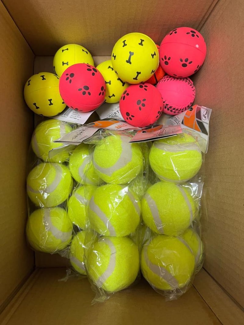 Box of Hard Tennis Balls, an Tough Dog Rubber Balls all new approx 30 balls all up