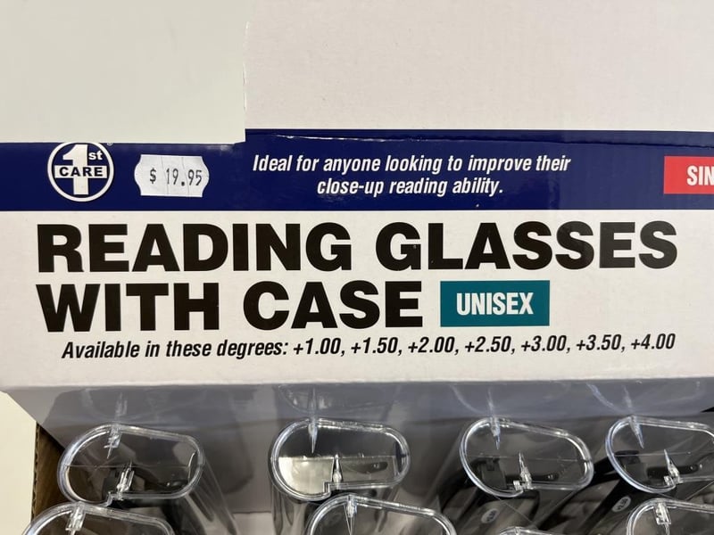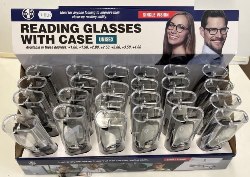 Display of 24 Reading Glasses with Case, Unisex Single Vision multiple magnifications SOLD AS 1 LOT