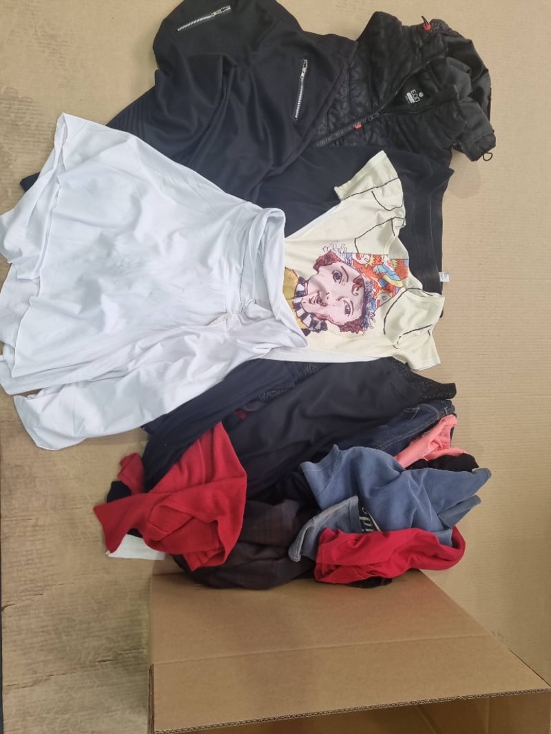 Clothing, mixed box of men and womens clothes including pants,tops and more
