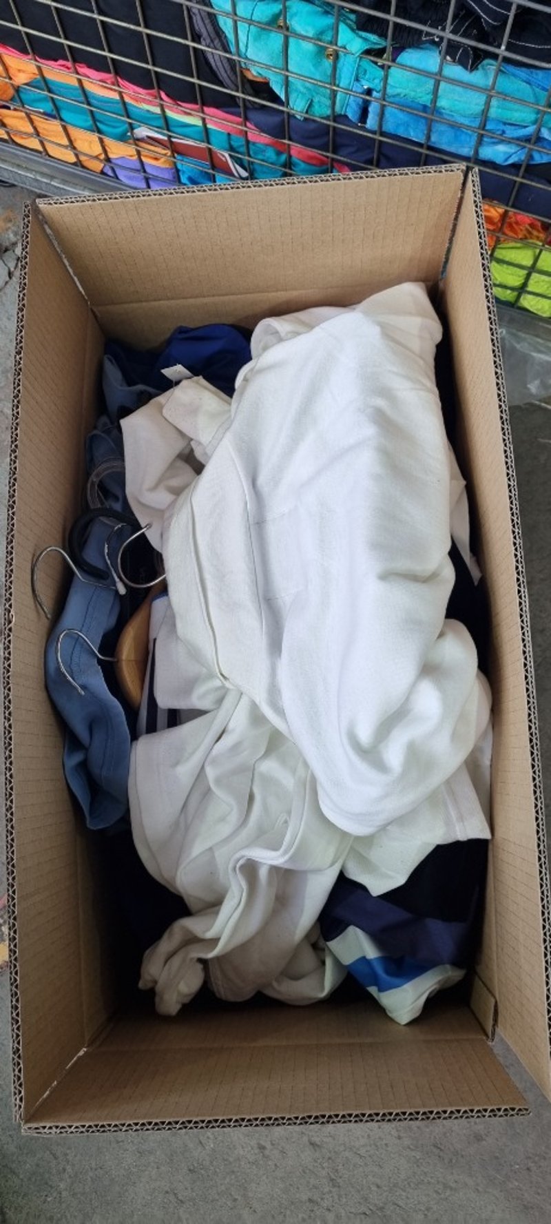 Clothing, mix gender clothing, in various colours and size. T-shirts, tank tops, pull over jumpers, long sleeve Box contains 25 randomly assorted items Sold as lot