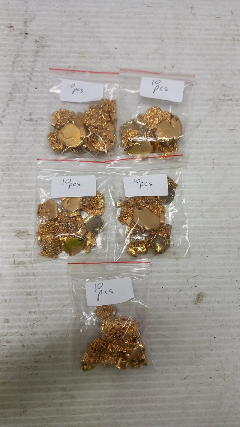 Costume Jewellery, silver and gold style nugget pendants8x bags of silver style pendant 5x bags of gold style pendant Sold as lot