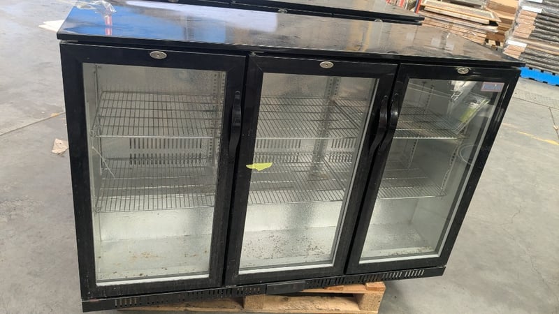 Refrigerated, 3 Door, Glass Door, 1 Phase, 10 Amp, Black, Scratches & Dents, 1355mmW x 550mmD x 900mmH