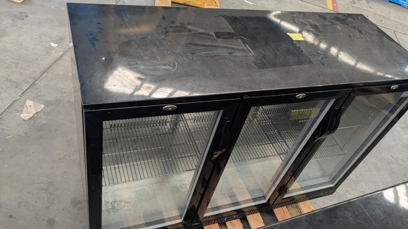 Refrigerated, 3 Door, Glass Door, 1 Phase, 10 Amp, Black, Scratches & Dents, 1355mmW x 550mmD x 900mmH