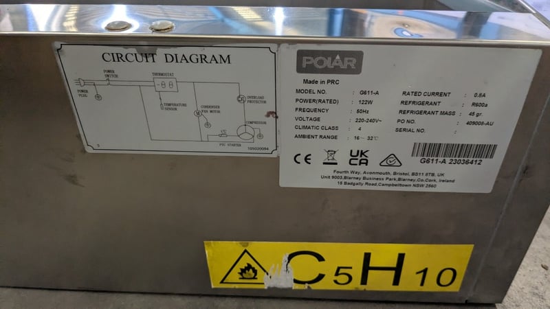 Polar G611-A G-Series Countertop Prep FridgeRefrigerated, 1 Phase, 10 Amp, Stainless Steel, Scratches & Dents, 2000mmW x 335mmD x 225mmH