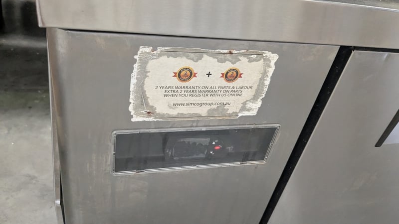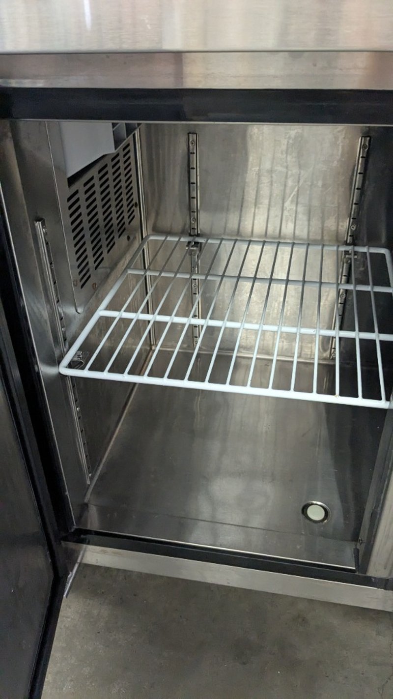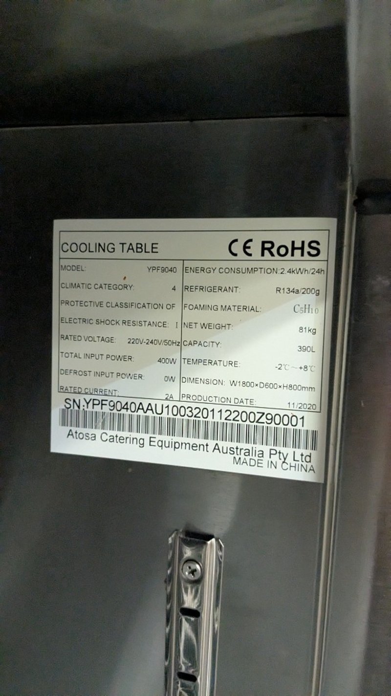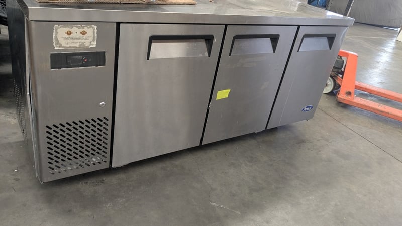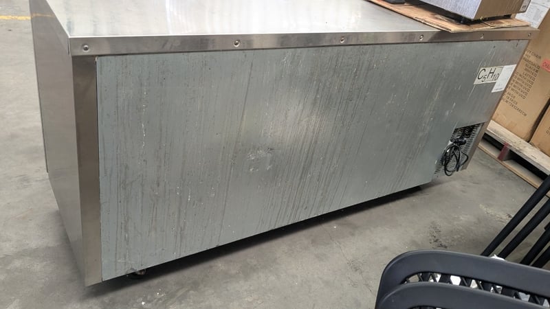 Undercounter Fridge. Features 390L Capacity, Motor On Left, Digital Temp Controls, Temp Range -2°C to 8°C, 3 Shelves, On Castors, Climate Class Normal, 3 Solid Door, S/S Finish, Scratches & Dents, 10 Amp 1 Phase, 1800mmW x 600mmD x 840mmH, 81KG