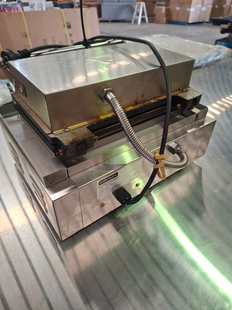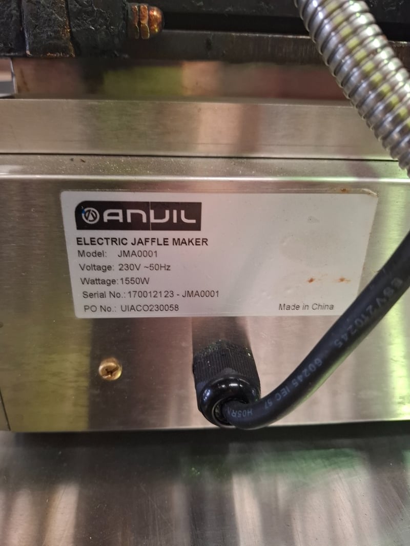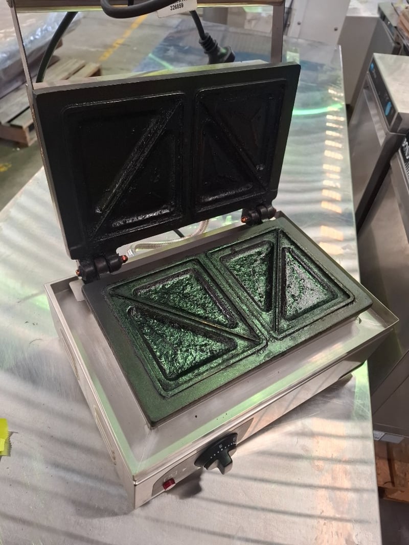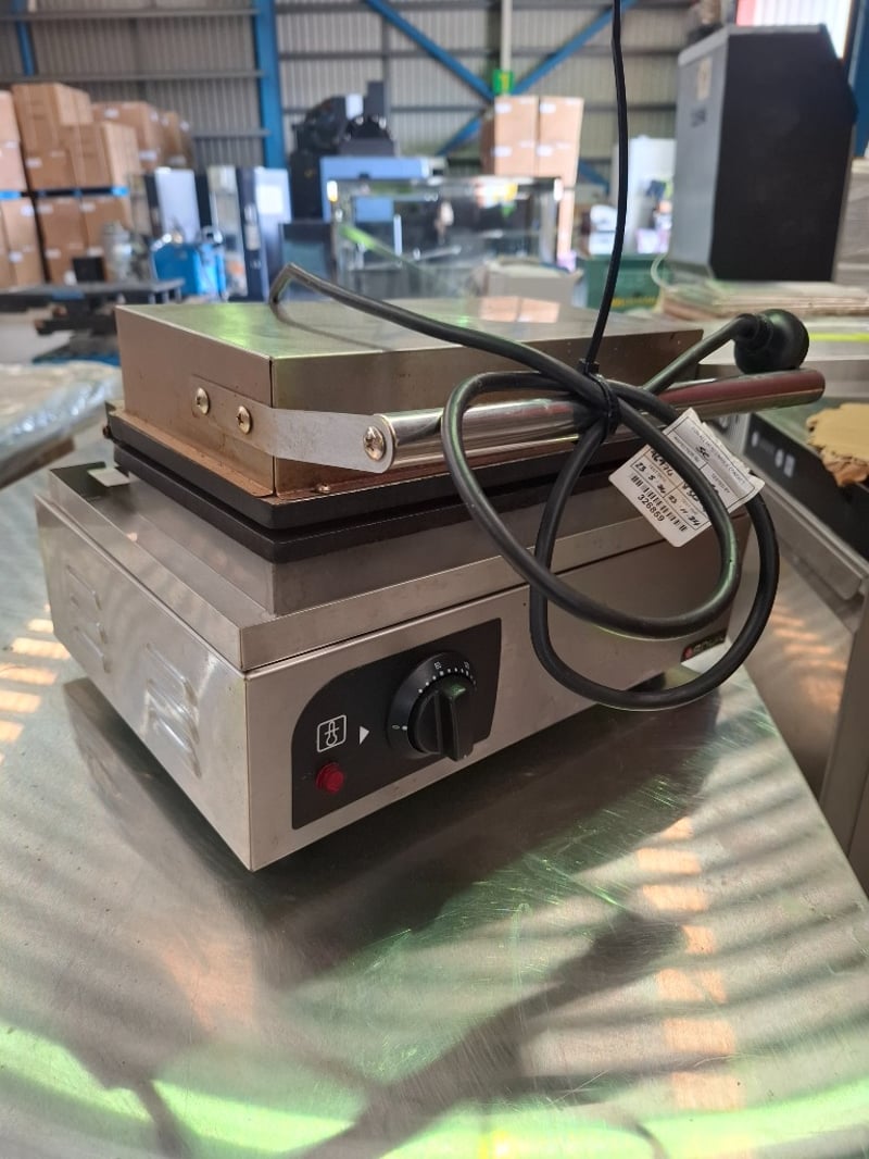 Jaffle Maker. Features Temperature range 50c to 240c, Drip tray, Rubber feet, S/S finish, 10 amp 1 phase, 385mmW x 270mmD x 240mmH, 18KG