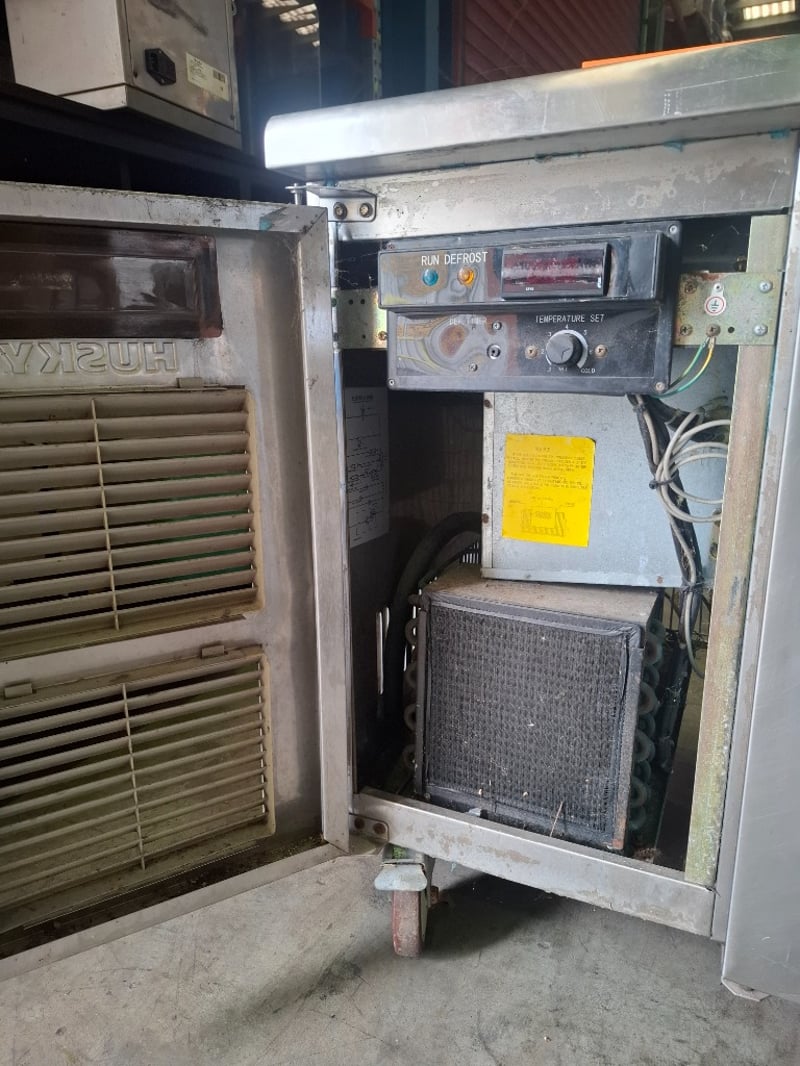 Assortment lot hospitality goods includes:1 x 3 doors Husky counter refrigerator , 0.50 m3 capacity, 2055 mm W x 750 mm D x 910 mm H 1 x Wega coffee machine 3 cups making, 1010 mm W x 570 mm D x 580 mm H 1 x Santos grinder cofe machine , 200 mm W x 320 mm D x 60 mm H 1 x orange express compactNOTE: WORKING CONDITION OF ITEMS UNKNOWN, INSPECTION RECOMMENDED, PARTS/ACCESSORIES MAY BE MISSING, HEAVY ITEMS