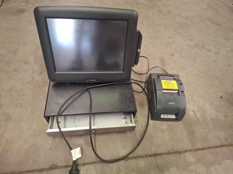 RADIANT SYSTEM Touch screen register till, includes labels printer NOTE; CONDITIONS UNKNOWN, SCRATCHES, CLEANING REQUIRED, PARTS/ACCESSORIES MAY BE MISSING