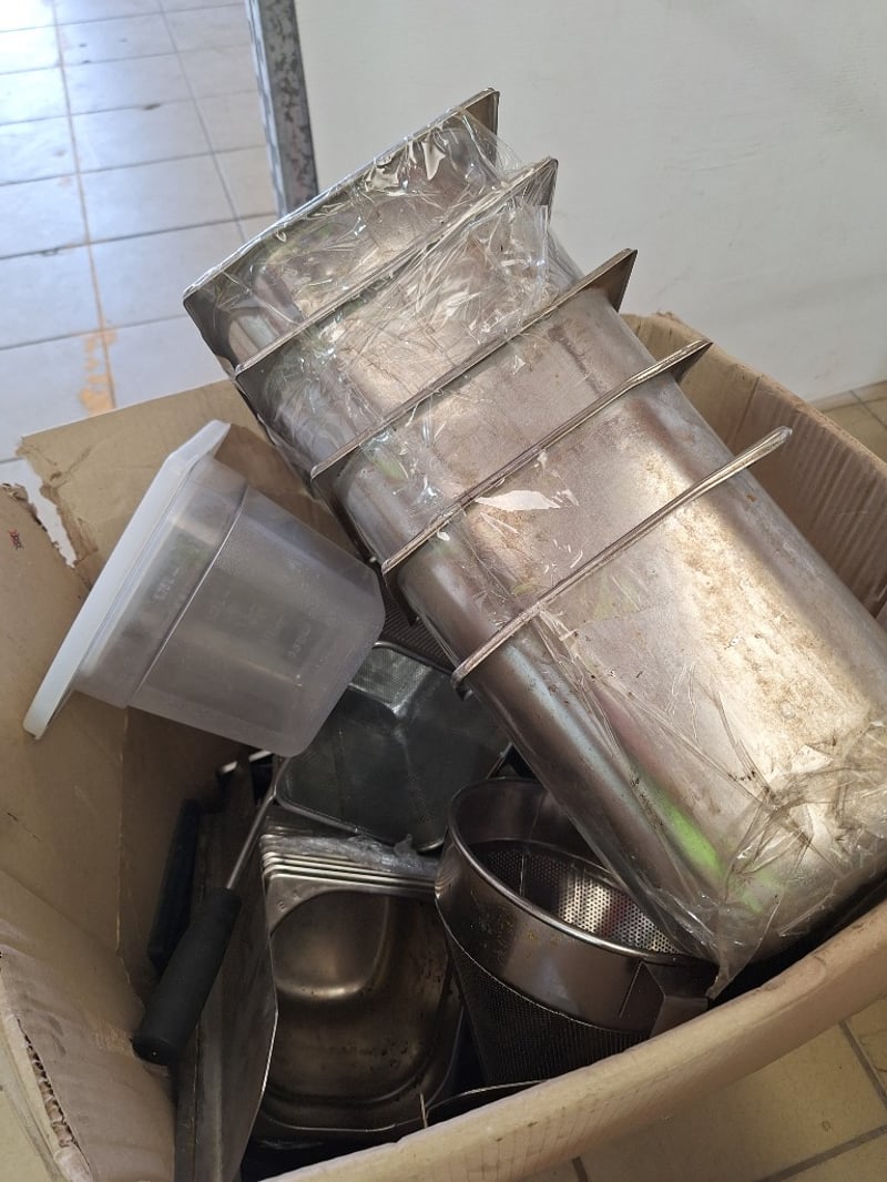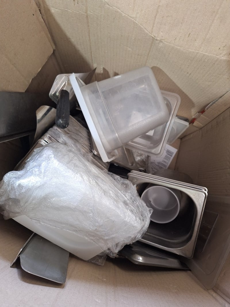 Assorted Commercial Lot Clear & Stainlee Steel Storing & Preparation Pans & Lids, Strainers Dimensions H:70xm W:50cm D:50cm