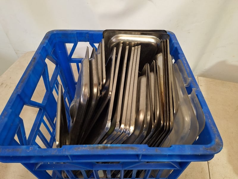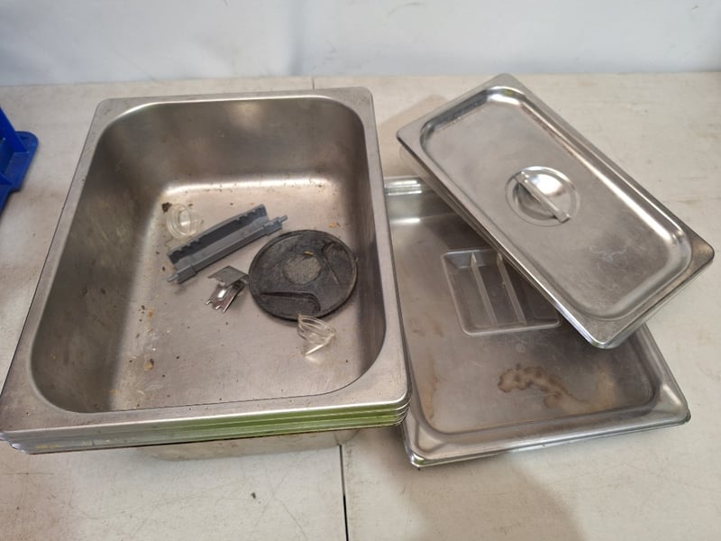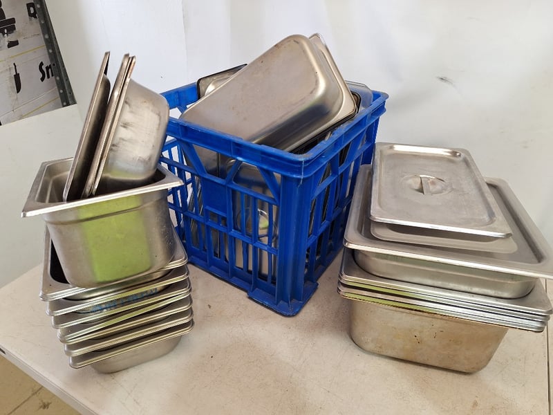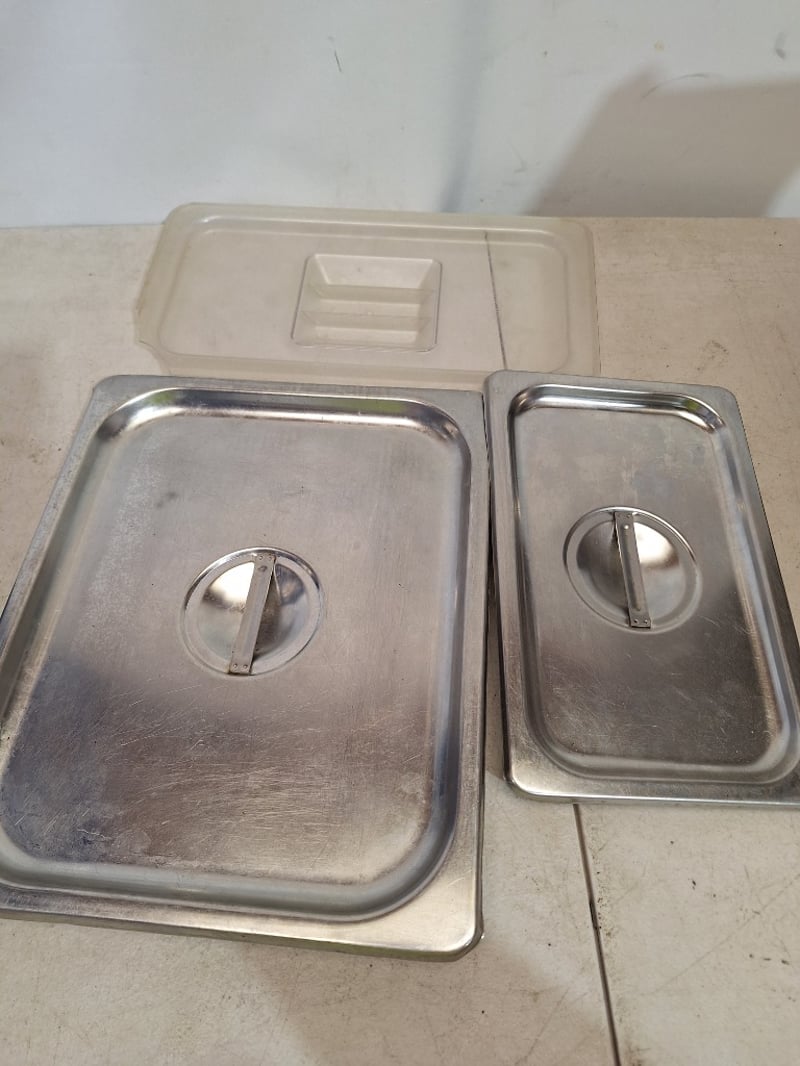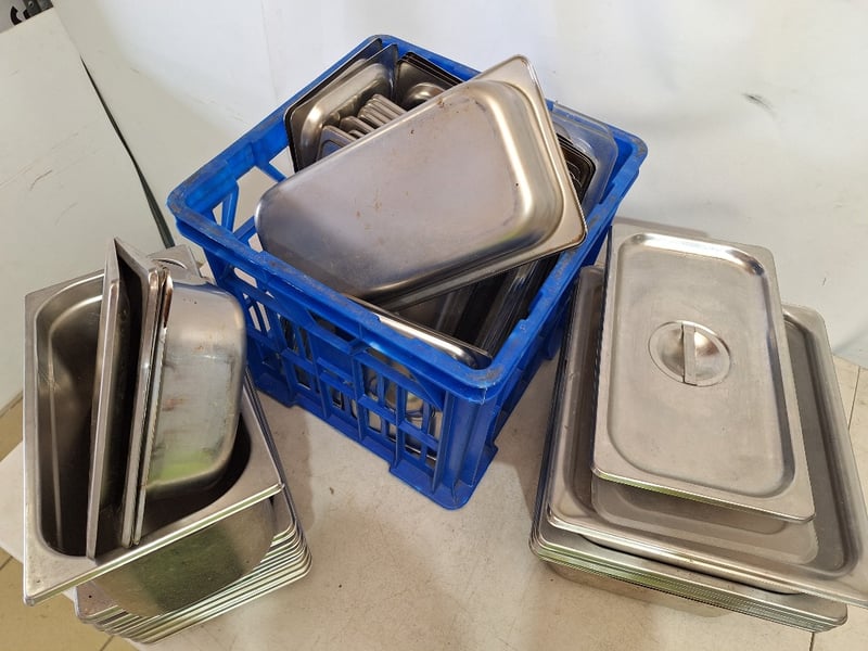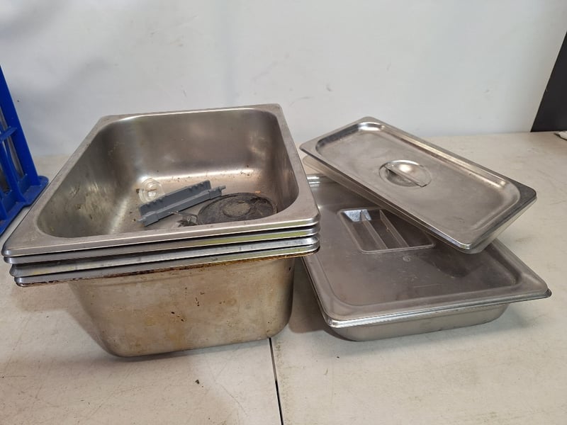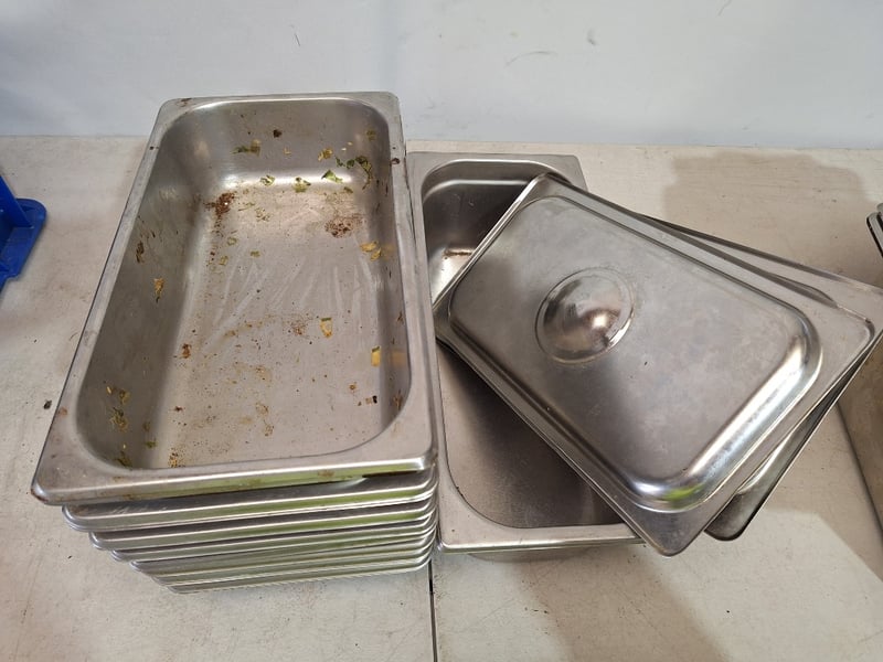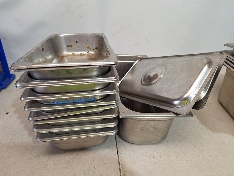 Assorted Commercial LotStoring & Preparation Pans & Lips, Stainless Steel StyleDimensions H:57cm W:53cm D:32cmSOLD AS LOT