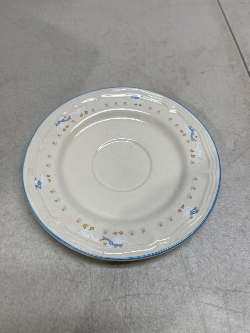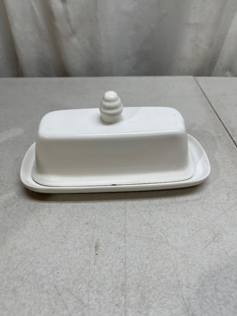 Glass plates and bowls, tea cup, butter holder, egg holder.SOLD AS LOT