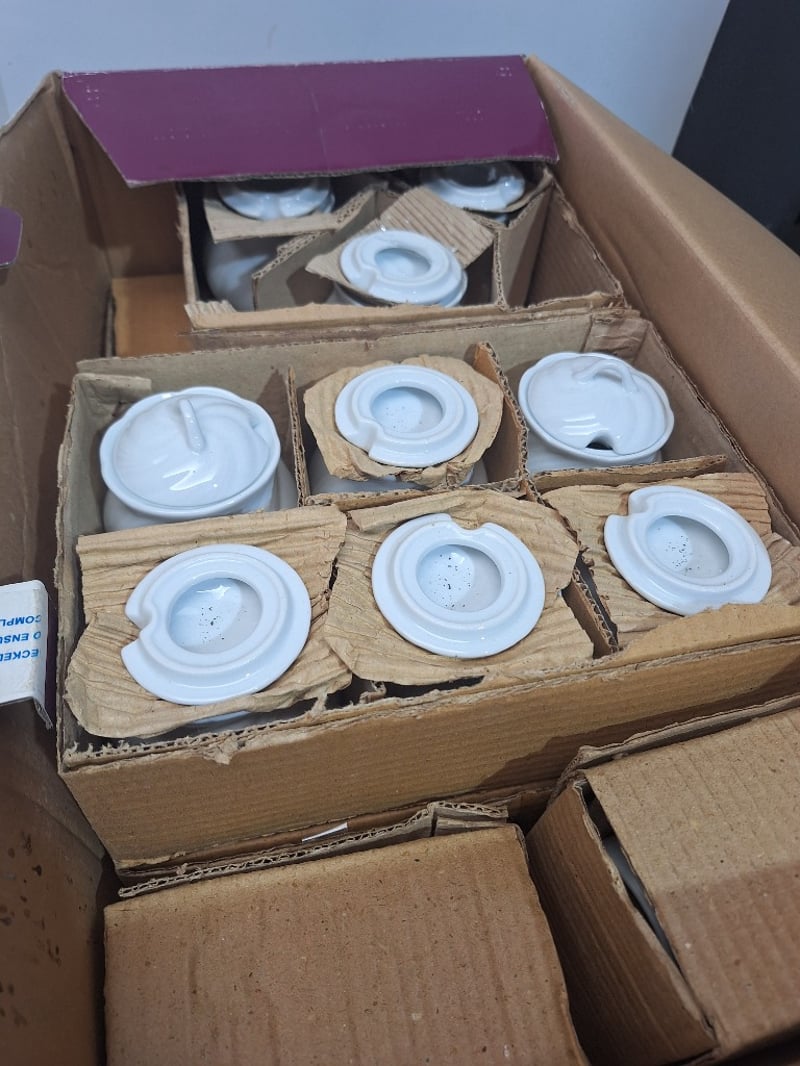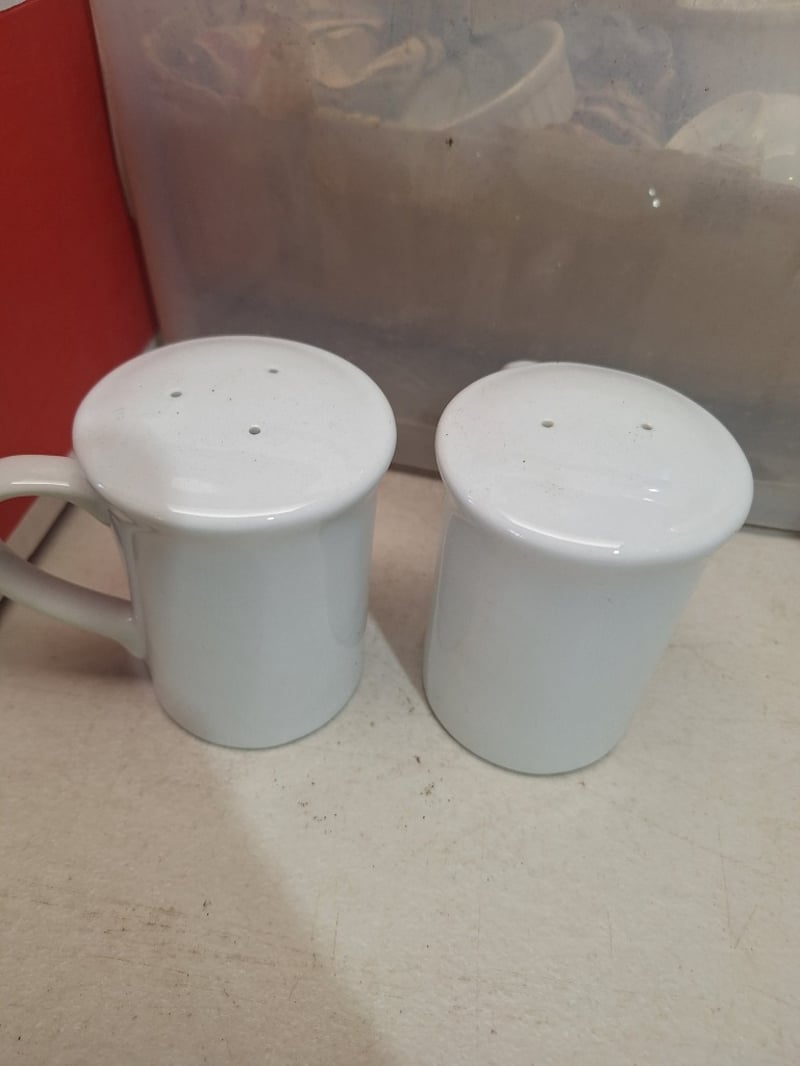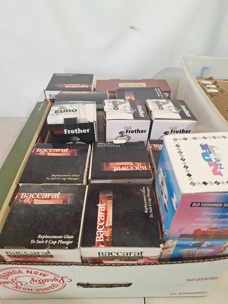 Assorted Lot Straw Dispenser, Milk Frother, Replacement Glass, Salt & Pepper Shakers, Sauce Bowls Dimensions H:55cm W:65cm D:55cm SOLD AS LOT
