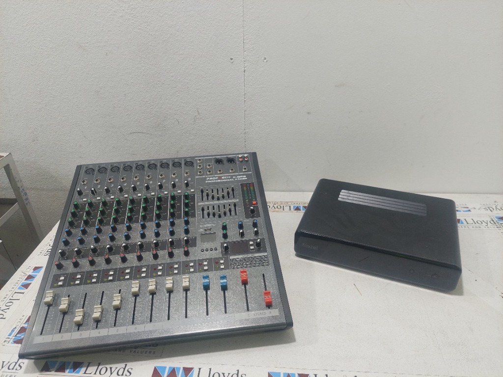Assorted items. Proftech Professional mixing console. Along with a Foxtel set-top box.Sold as a lot.