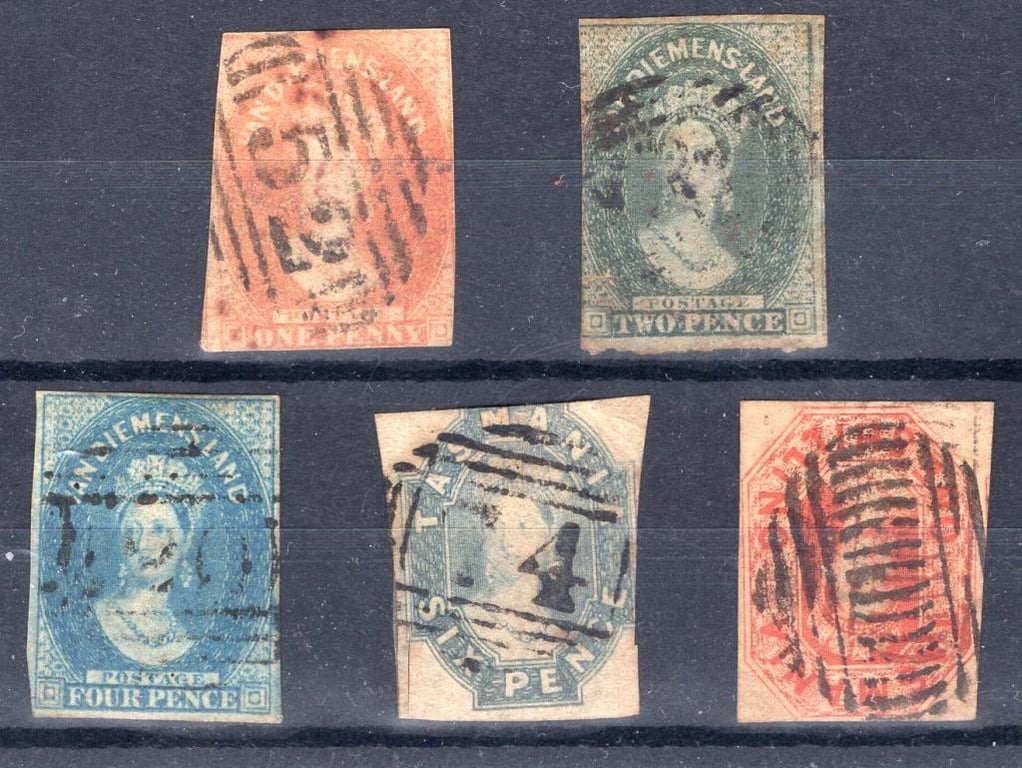 Tasmania set of imperforate Chalon stamps 1857-1867 SG 25-49 range