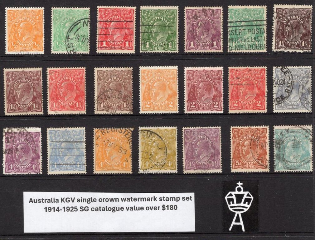 Australia KGV single crown watermark stamp set 1914-1925