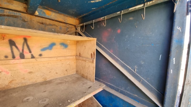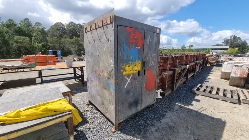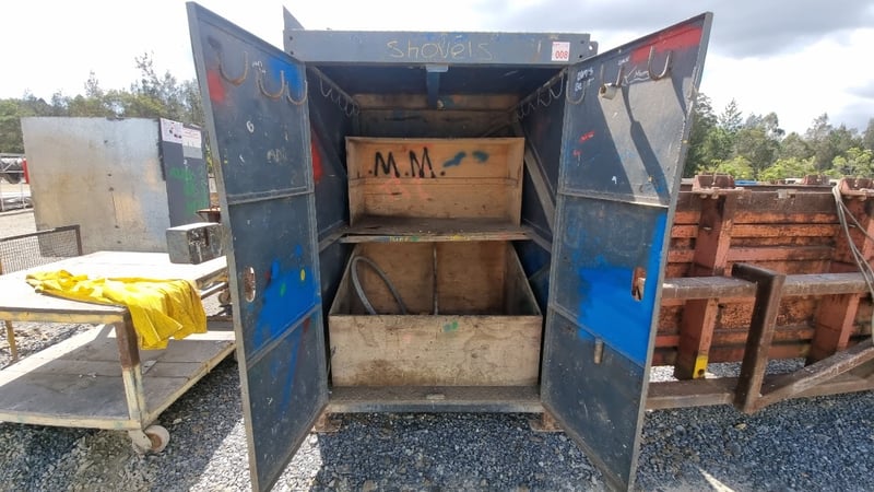 Lockable Tool Box, Timber Storage Compartments, Hooks Inside and Out, Dimensions 213cm(H)×135(W)×135cm(D)