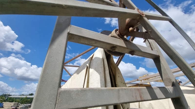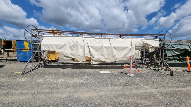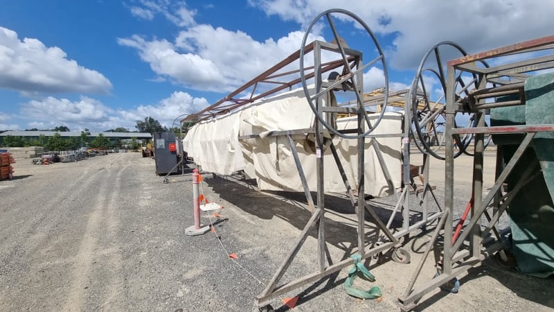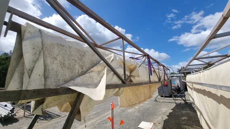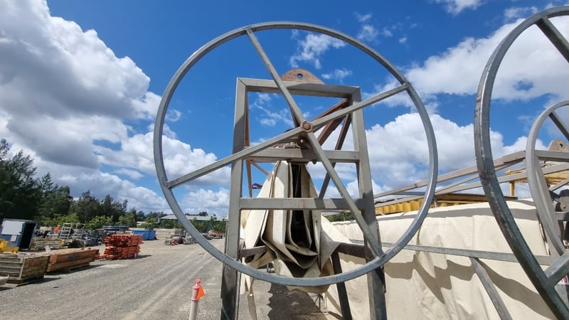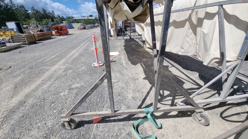 Mobile Tarp Roller, Winding Wheels.on.Each End, White Tarp, On Casters, Dimensions 280cm(H)×205cm(W)×6.5M(D),Location: Macksville, NSW