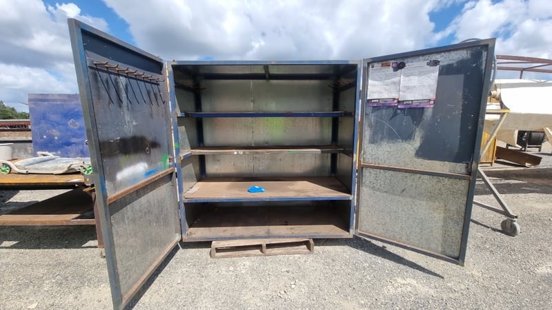 Metal Tool Box, Lockable with Padlock, 3 Shelves, Hooks, Dimensions 200cm(H)×200cm(W)×95cm(D)