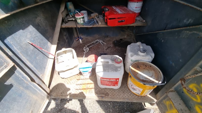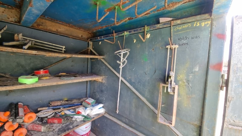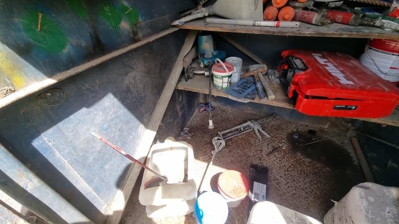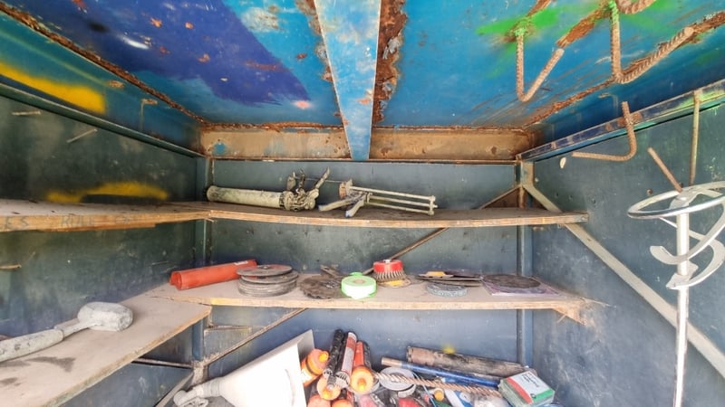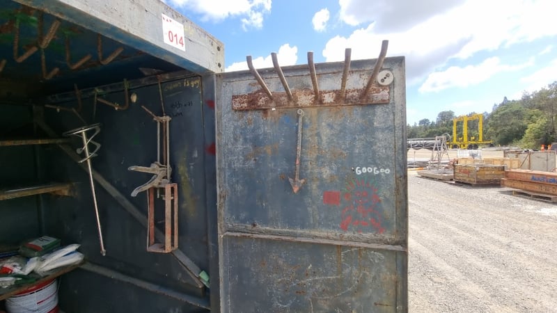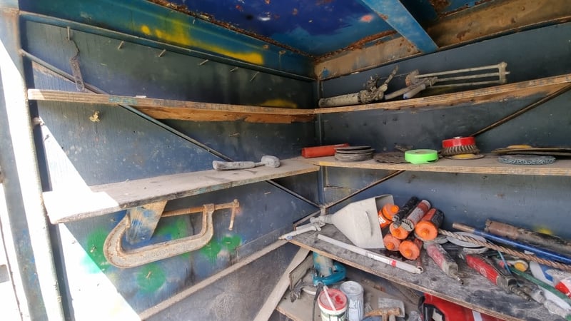 Metal Tool Storage Unit, Multiple Shelves and Hooks, Contents Included, Dimensions 210cm(H)×140cm(W)×135cm)D)