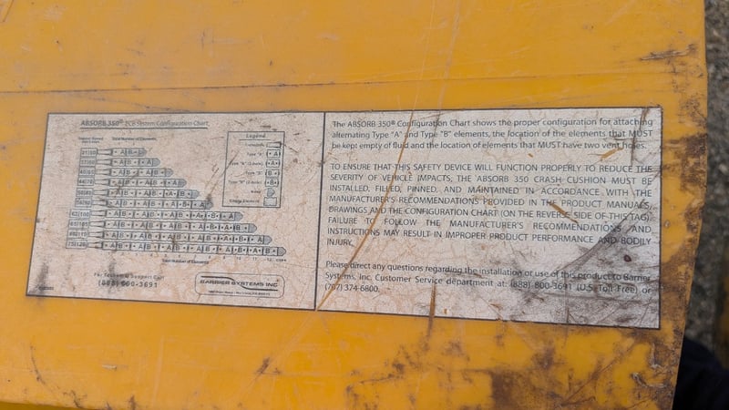 Barrier System, Absorb350, Crash Cushion, With Metal Brackets, Colour Yellow, Dimensions 80cm(H)×71cm(W)×100cm(D), Quantity 16
