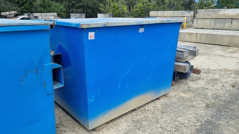 Skip Bin, With Contents, Cable With Pulley System, Various Tonnes, Dimensions 147cmD×190cmW×135cmH,Sold As LotLocation: Macksville, NSW