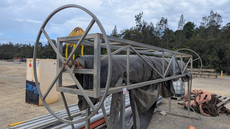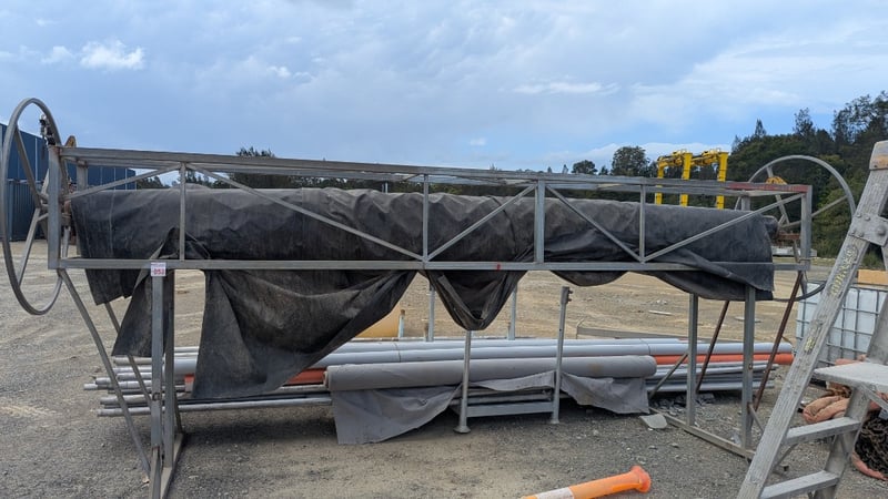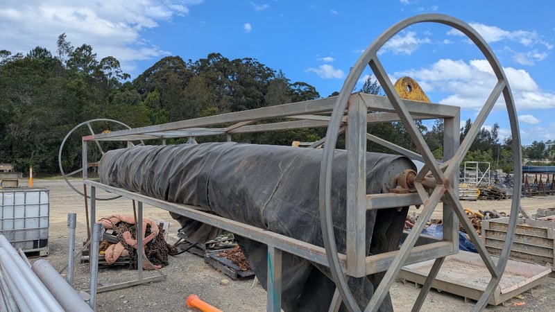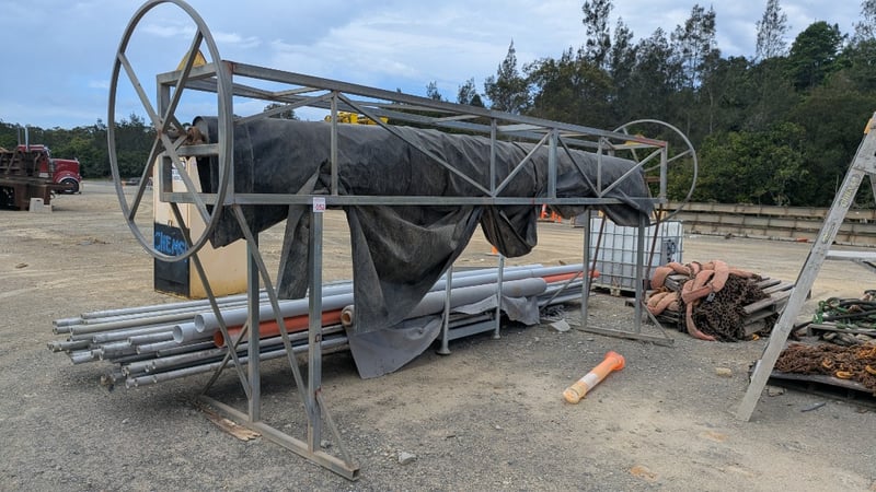 Tarp Roller, Winding Handles Each End, Black Tarp, Lifting Points, Dimensions 230cm(H)×168cm(W)×535cm(D)