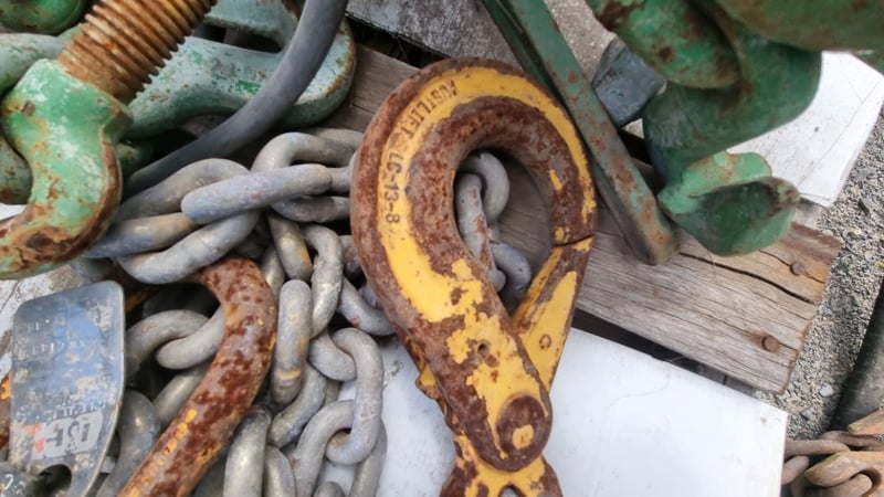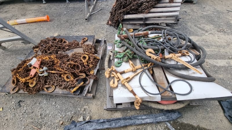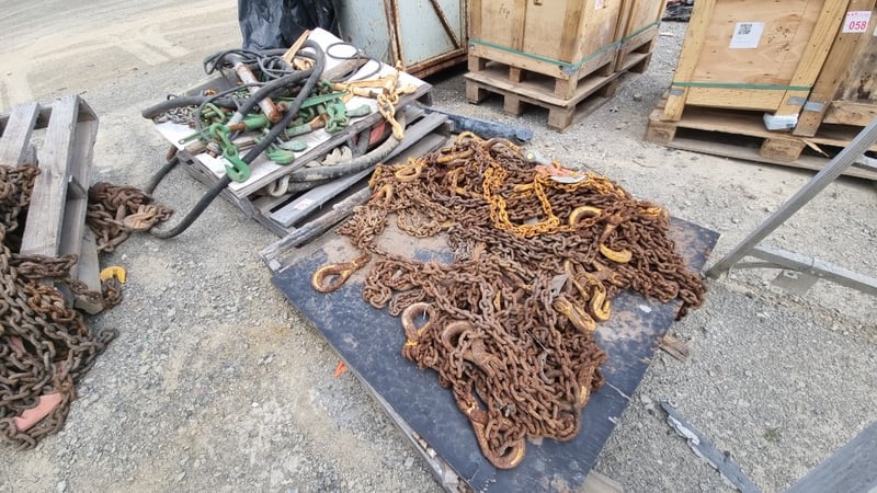 Heavy Duty Chains And Hooks, Chain Tighteners, Hose Vibraters, Various Lengths And Tonnes, Quantity to Lot