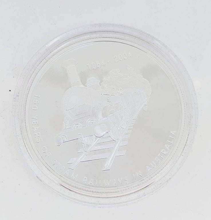 2004 150 YEARS OF STEAM RAILWAYS IN AUSTRALIA $5 SILVER PROOF COIN488239+43