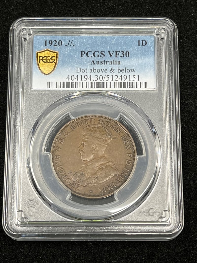 AUSTRALIAN 1920 ,//, PCGS GRADED PENNY COIN. (page 49 Renniks 32nd edition value $500) Condition: VF 587616+25