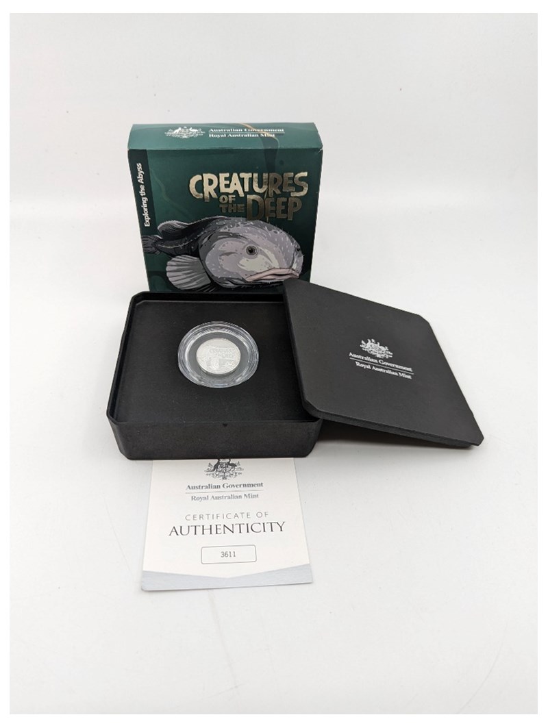 ROYAL AUSTRALIAN MINT 2023 CREATURES OF THE DEEP SILVER COINNote: Box Has Small DamageCondition: Proof996802+16