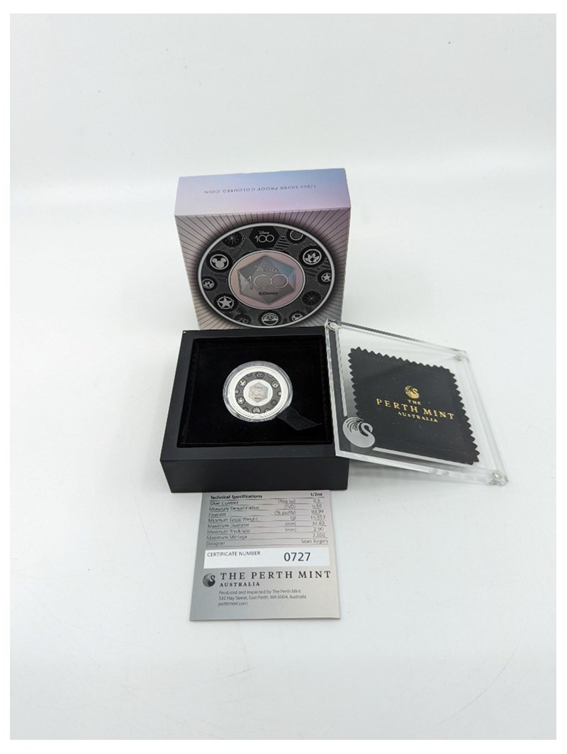 AUSTRALIAN THE PERTH MINT 2023 DISNEY 100 YEARS ANNIVERSARY COLOURED SILVER COINCondition: Unc996802+17