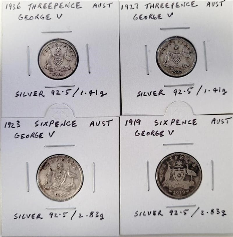 SILVER COLLECTION OF AUSTRALIAN THREEPENCE AND SIX PENCES Provenance: Threepence'S And Six Pence'S Including- 1919 Six Pence 92.5% / 2.83G 1923 Six Pence 92.5 % / 2.83G 1927 Three Pence 92.5% / 1.41G 1936 Three Pence 92.5% / 1.41G 488274+74