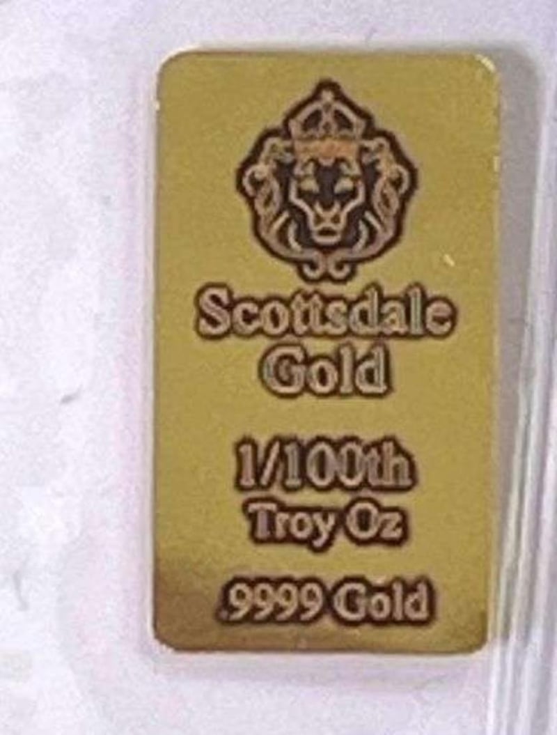 SCOTTSDALE LION 1/100OZ 9999 GOLD BULLION BAR 23528+69
