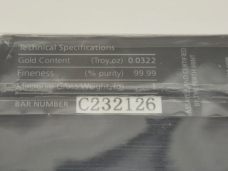 THE PERTH MINT AUSTRALIA GOLD MINTED BAR. NO: C232126.