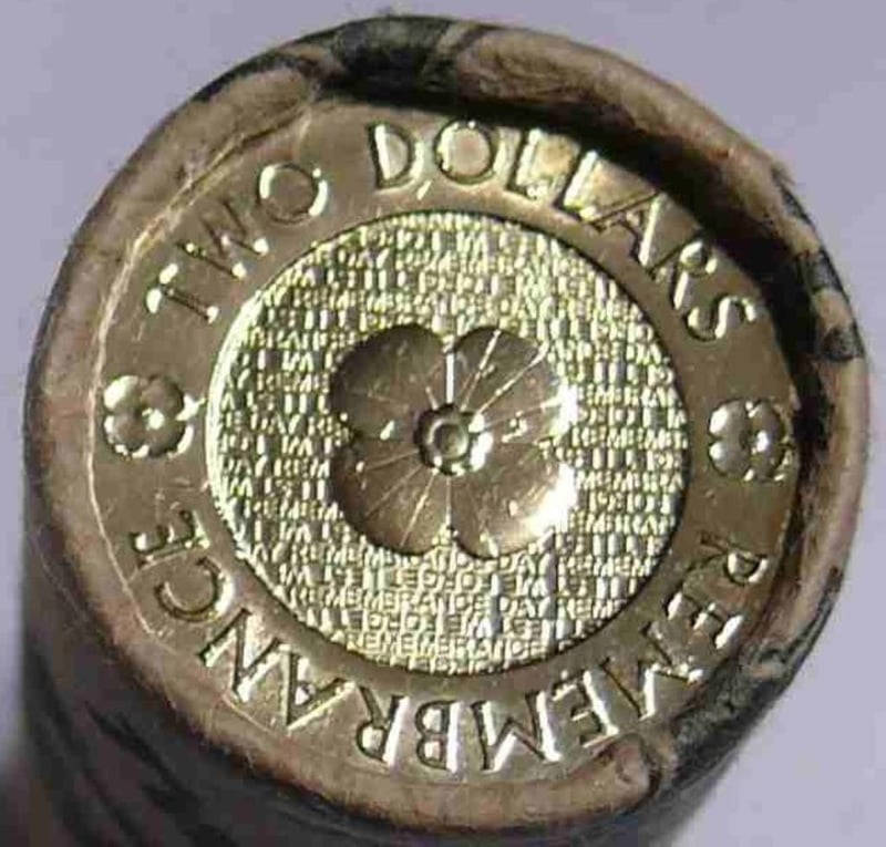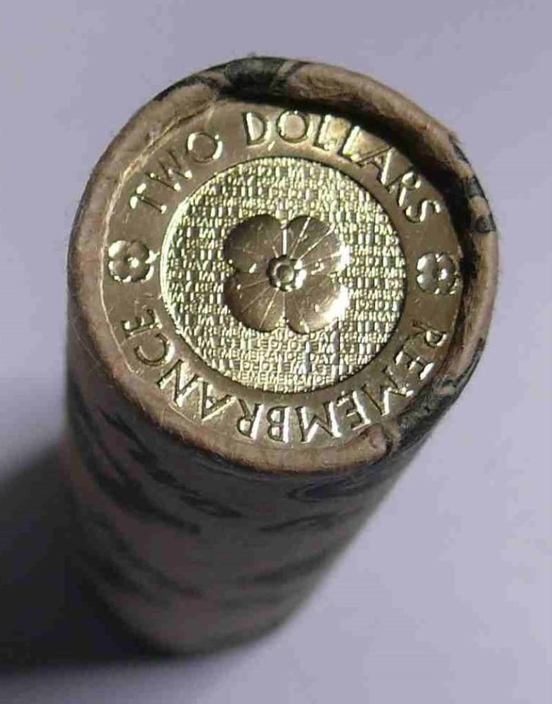 2012 REMEMBRANCE DAY GOLD POPPY $2 COIN ROLL (25X COINS IN A ROLL). 488345+1