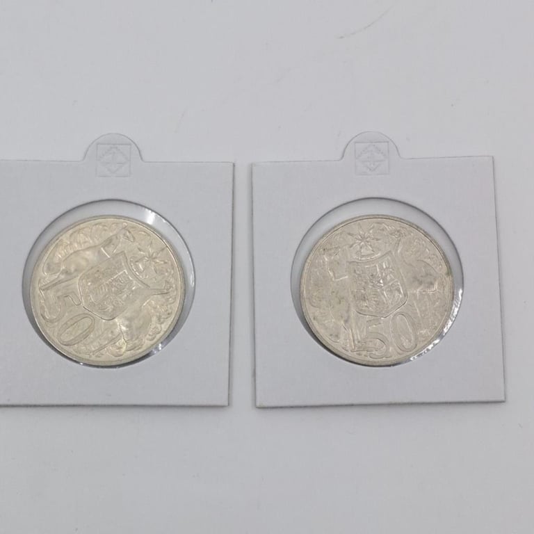 TWO AUSTRALIAN 1966 ROUND FIFTY CENT SILVER COIN. HIGH GRADE